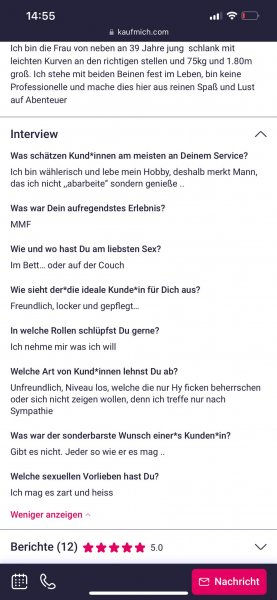 Da mein Angebot eher privat als professionell ist und ich selber Spaß an gutem Sex habe, bitte ich um ein Foto von Dir per WhatsApp für die erste Sympathie.